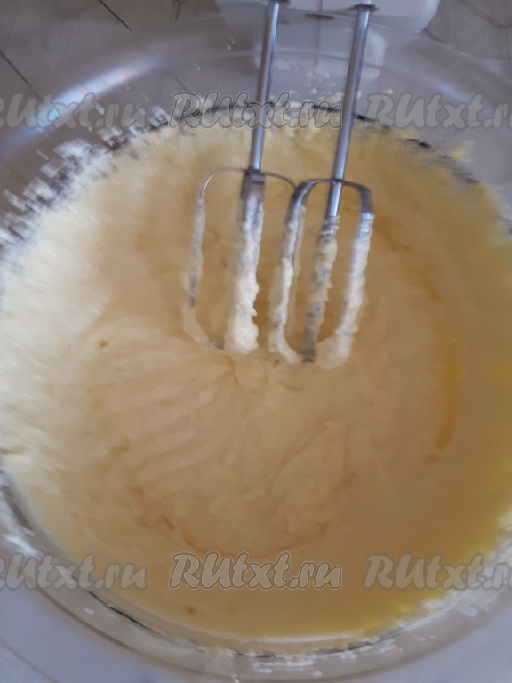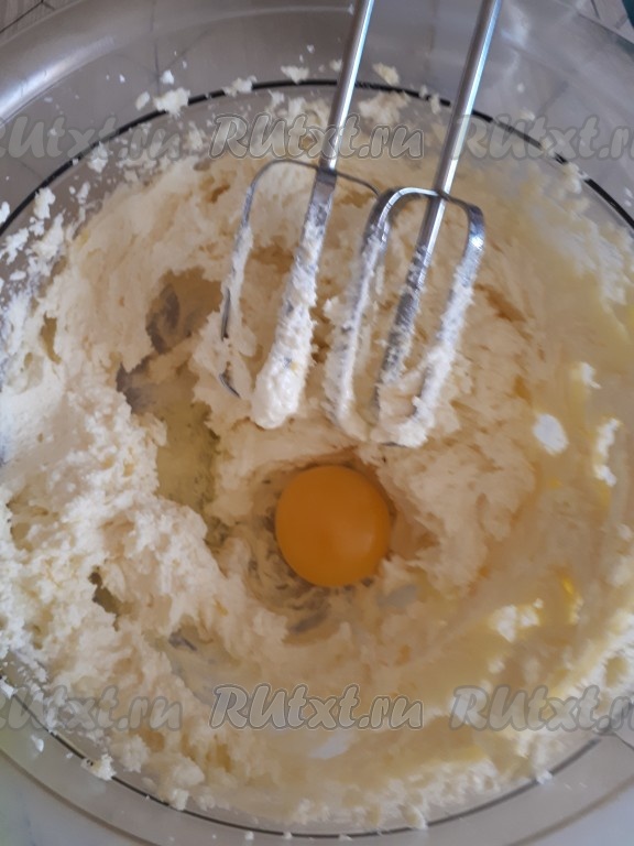 Затем по одному добавить яйца, продолжая взбивать миксером после каждого яйца.