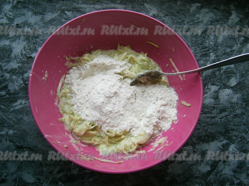 Тщательно перемешать получившуюся массу, всыпать муку.