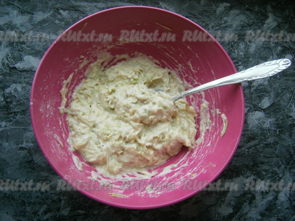 Снова перемешать, тесто получится в меру густым, похожим на тесто для оладий.