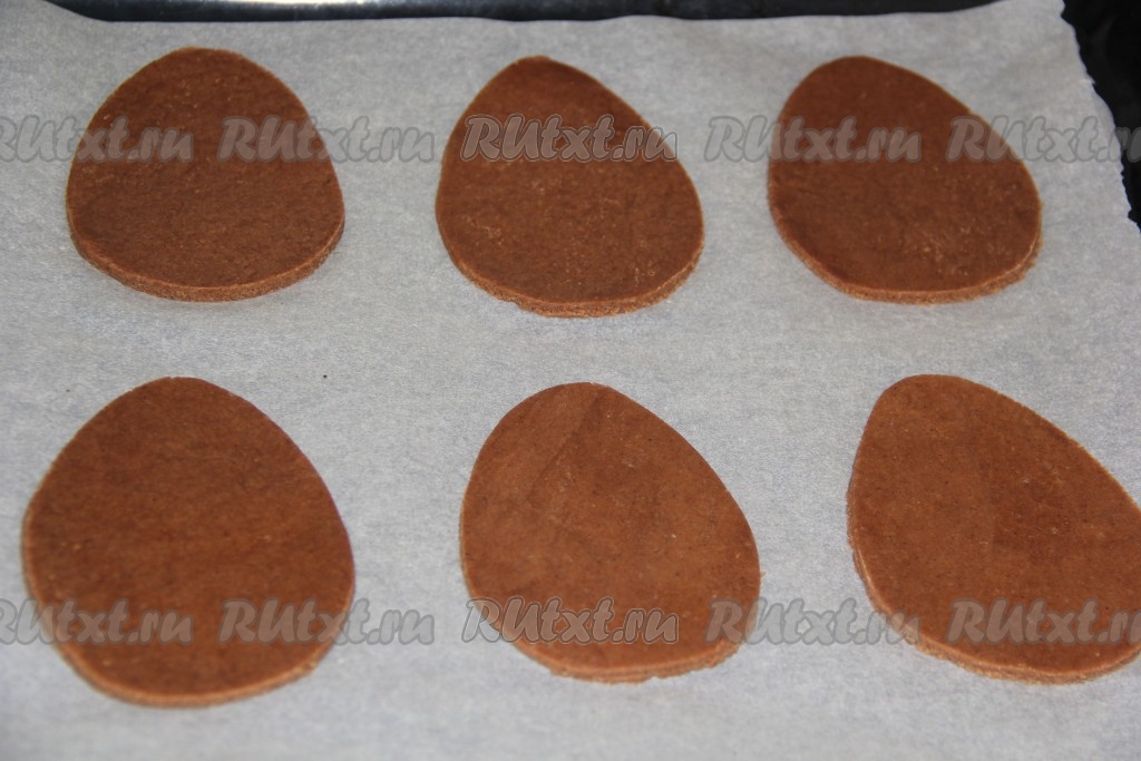 Выложить пасхальное печенье на противень, застеленный бумагой для выпечки.