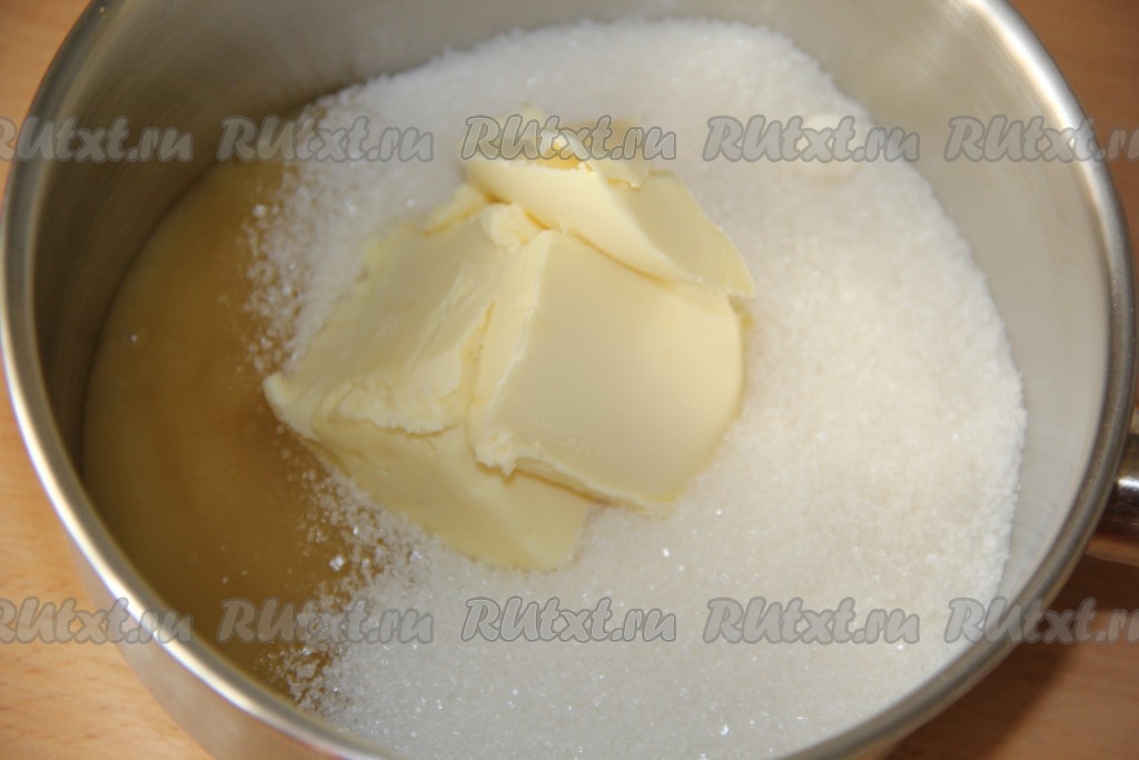 Соединить в кастрюле мёд, сливочное масло и сахар.