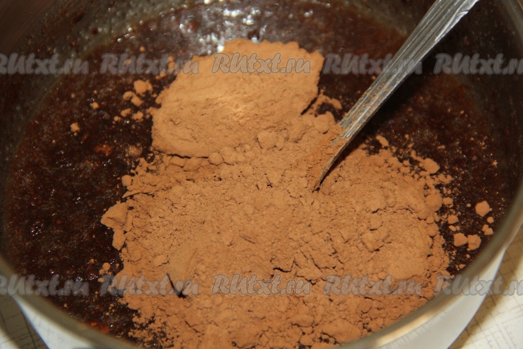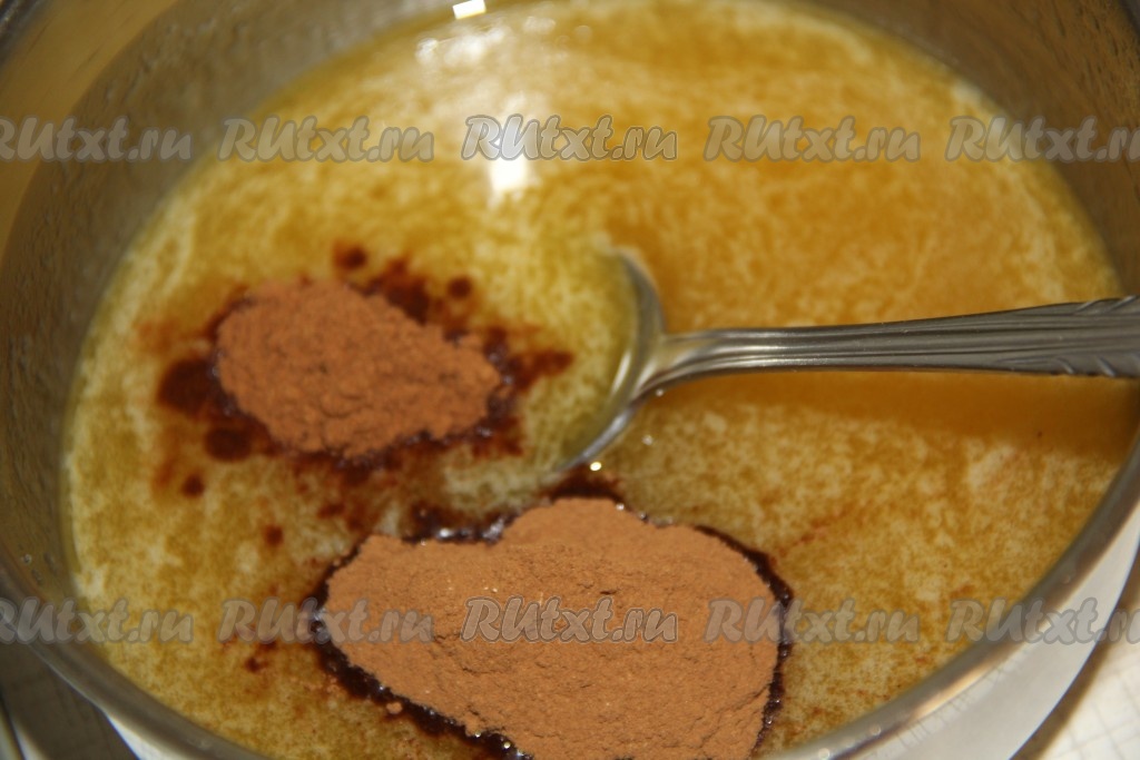 Перемешать, а затем добавить какао, тщательно перемешать.