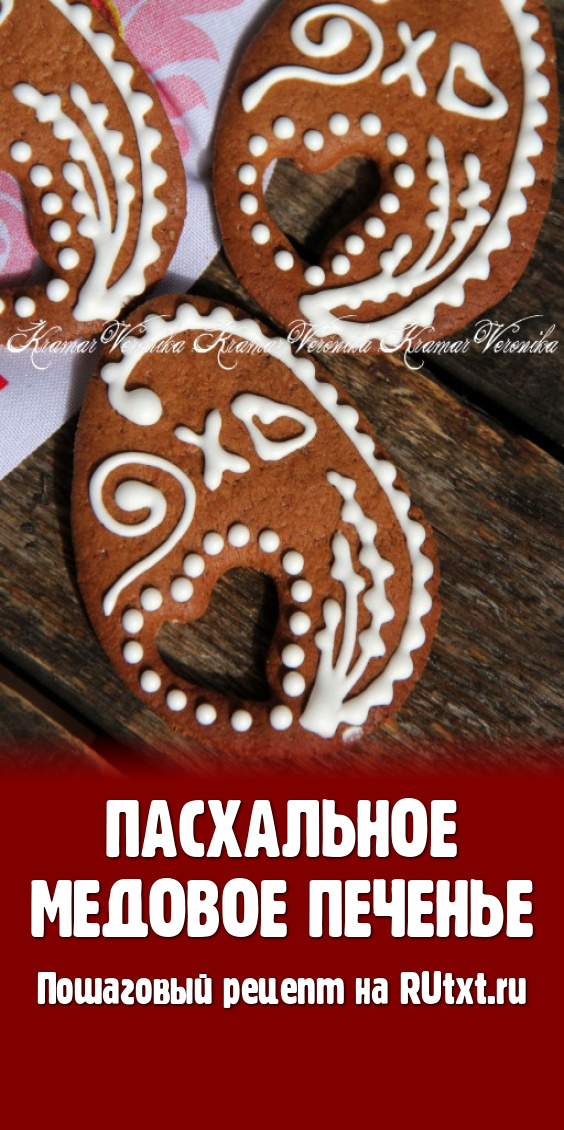 На Пасху можно приготовить не только куличи и творожные пасхи, но ещё и красивое тематическое печенье. Я предлагаю очень удачный рецепт пасхального медового печенья. Оно получается очень вкусным, хрустящим, ароматным и, конечно, красивым. Печенье может быть любой формы. Я вырезала шаблон из бумаги и по нему сформировала печенье. Можно использовать покупные формы. Такое пасхальное печенье украсит ваш праздничный стол или станет отличным подарком для близких и друзей.