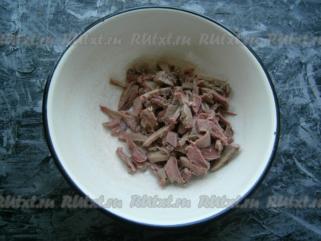 Нарезать язык брусочками.