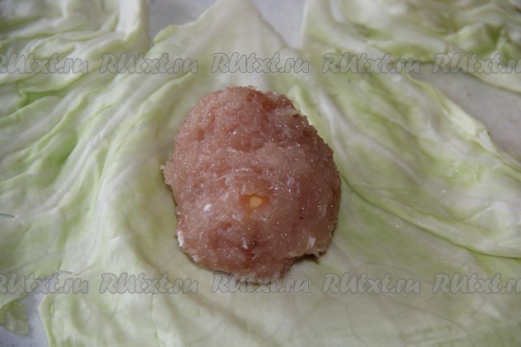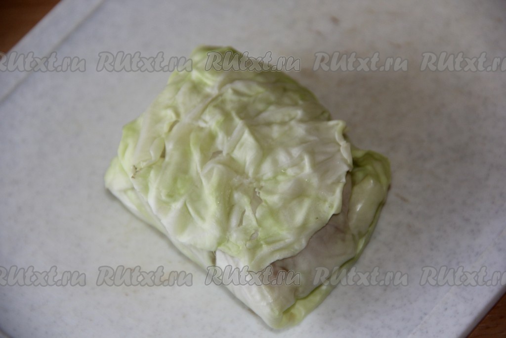 Завернуть начинку в капустный лист, формируя голубец.