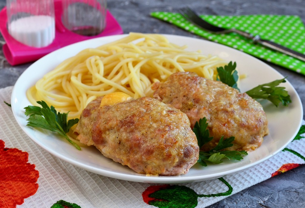 Готовые наивкуснейшие мясные зразы с сыром достать из духовки и подать к столу горячими с любым гарниром.