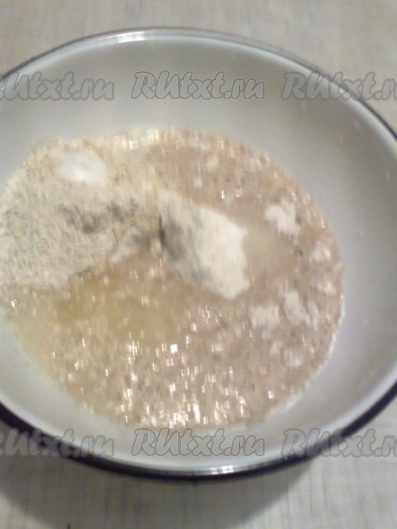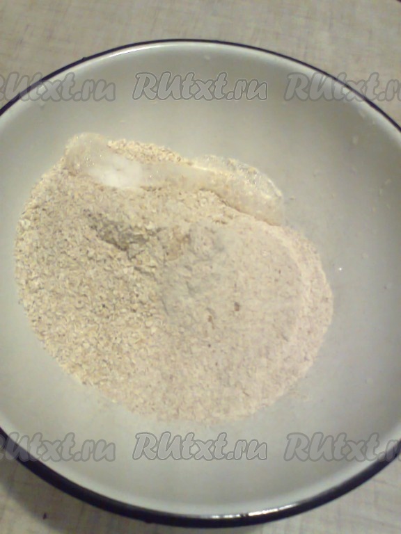 Для начала включите на разогрев духовку до 230 градусов. Затем измельчите овсяные хлопья в измельчителе или кофемолке. В миске смешайте измельченные овсяные хлопья, муку, гашеную соду и соль.