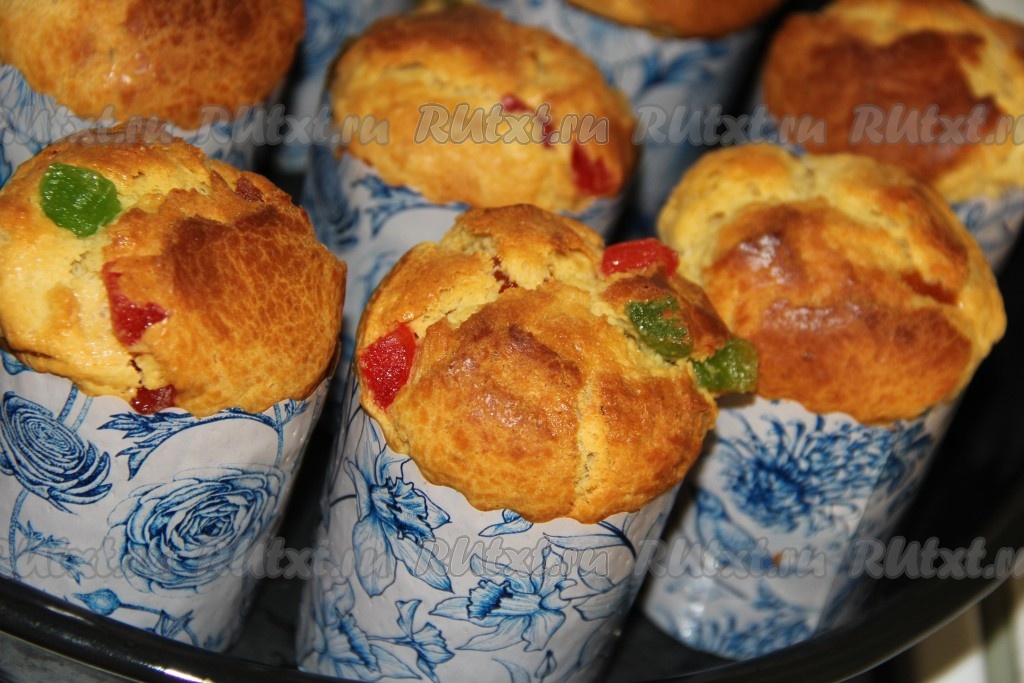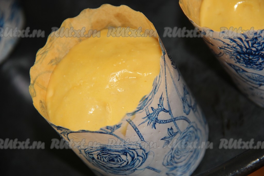 Тесто разделить на части и выложить в формы (я выпекала в бумажных формах), заполняя их на половину. Я выпекала небольшие куличики, у меня получилось 8 штук. Оставить тесто в формах на 1 час в тёплом месте.