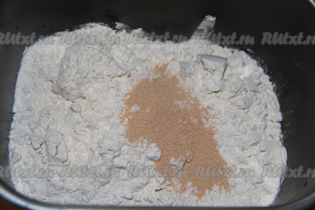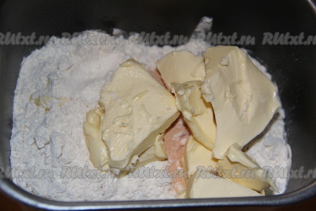 Сверху выложить размягченное сливочное масло, не растопленное! Выставить режим хлебопечки "Замес теста".