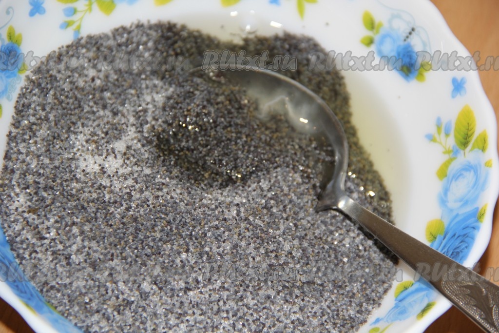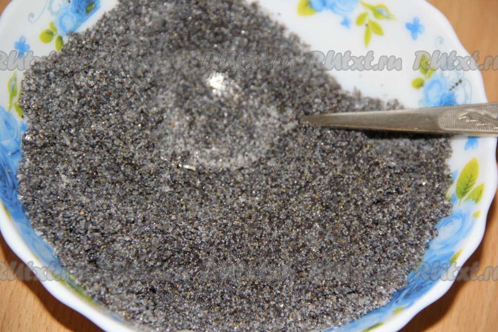 Перемешать маковую начинку, она получится сыпучей и липкой.