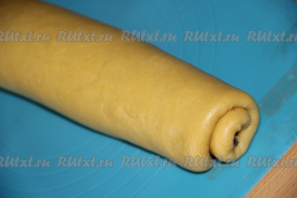 Свернуть тесто с начинкой в плотный рулет. У нас получится два рулета.