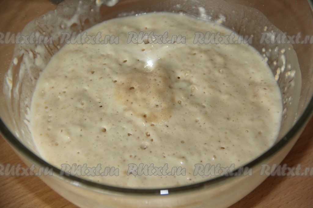 Оставить опару в тепле на 1 час. Опара покроется пышной шапкой.