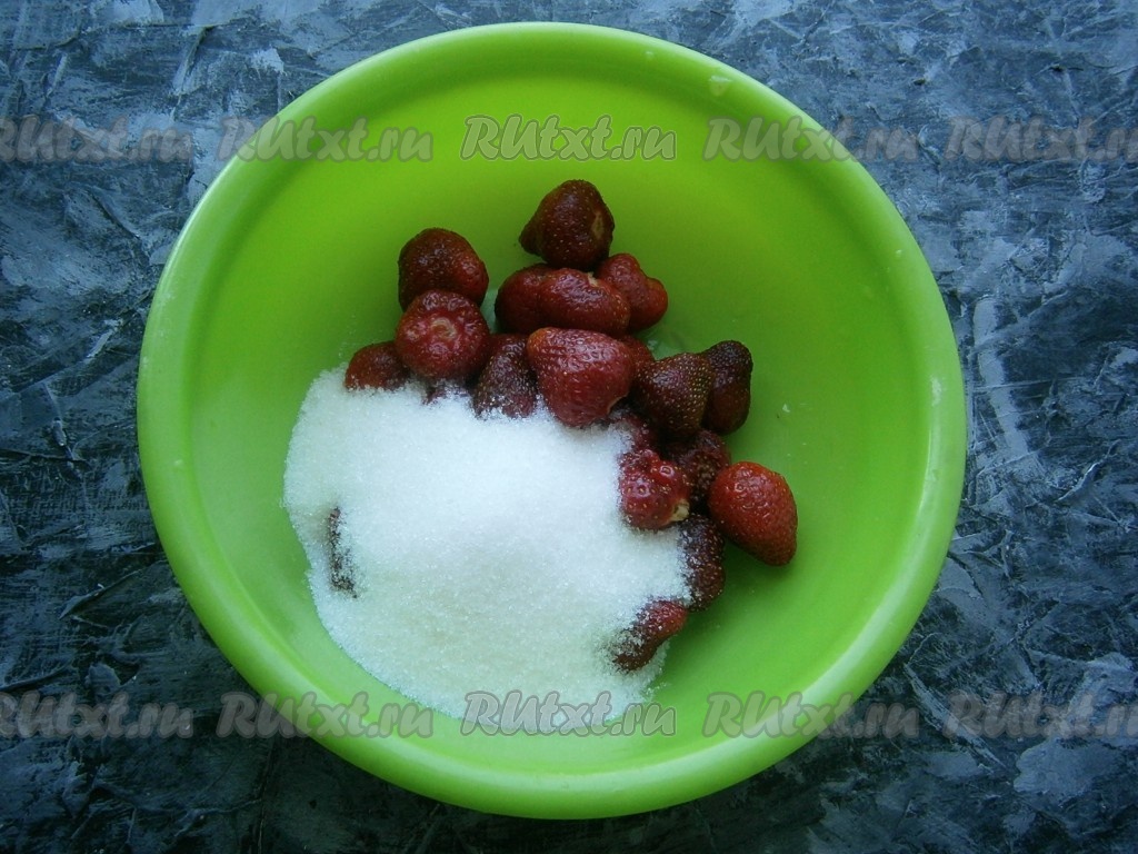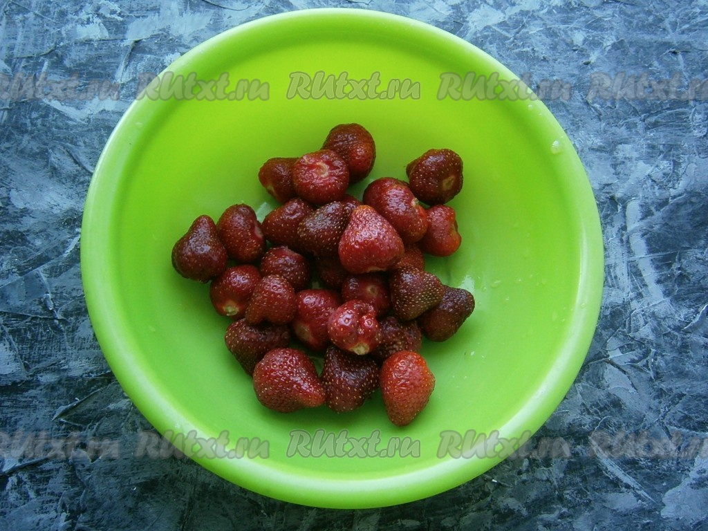 Клубнику можно взять как свежую, так и замороженную. Свежую клубнику нужно хорошо промыть водой, удалить хвостики. Замороженные ягоды нужно разморозить, лишнюю жидкость слить. 250 грамм подготовленной клубники выложить в глубокую миску.