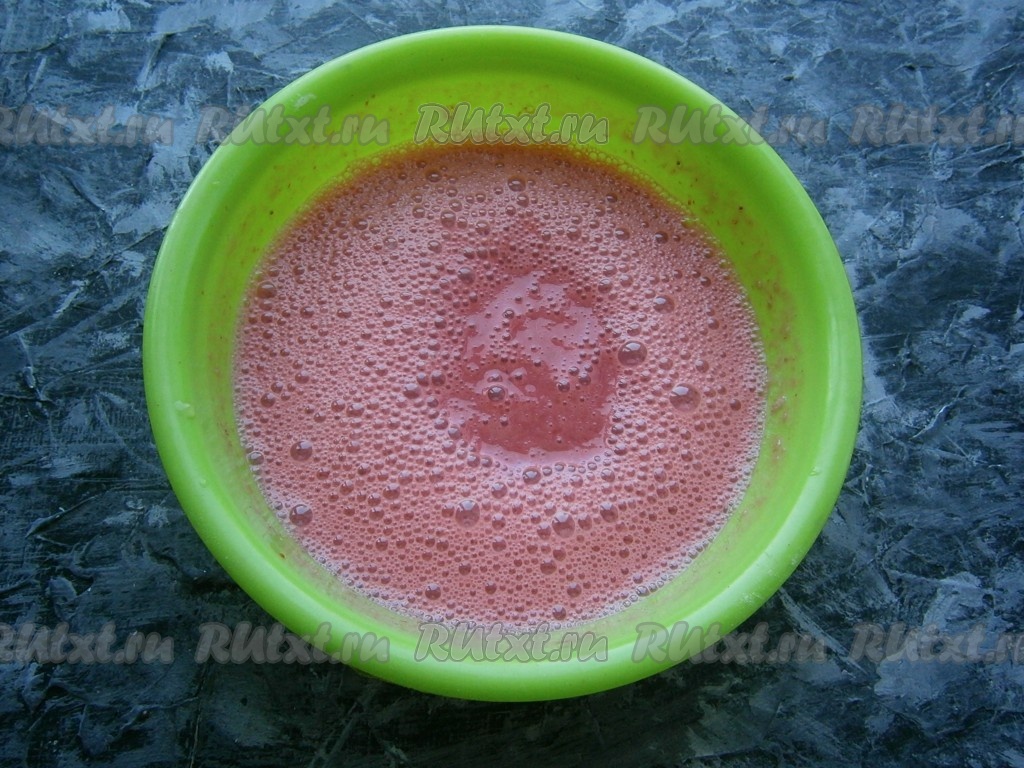 Взбить клубничную смесь погружным блендером до пышной пены.