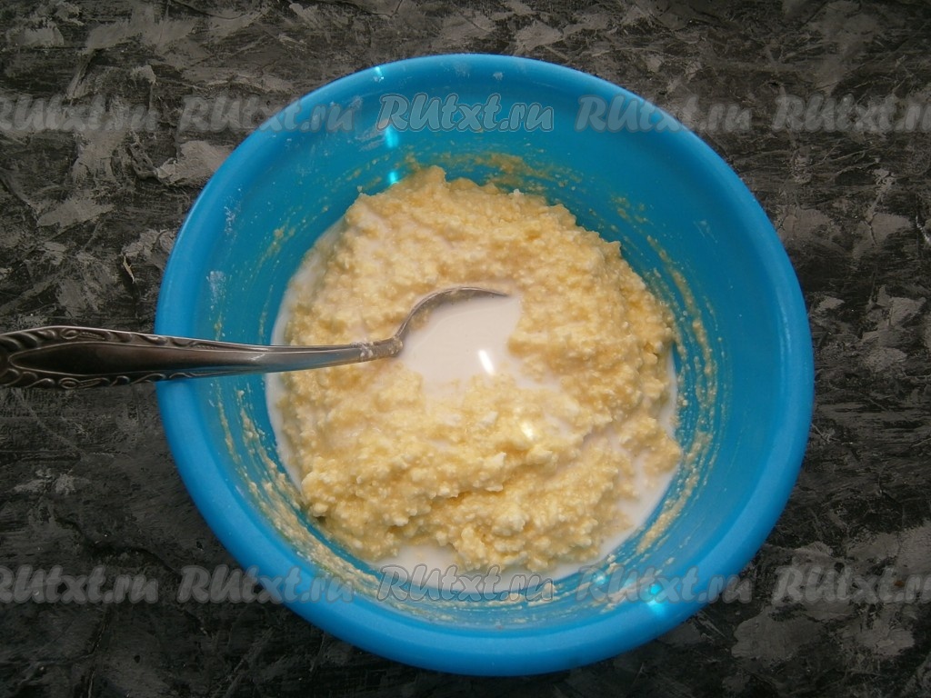 Перемешать, влить молоко, еще раз тщательно перемешать.