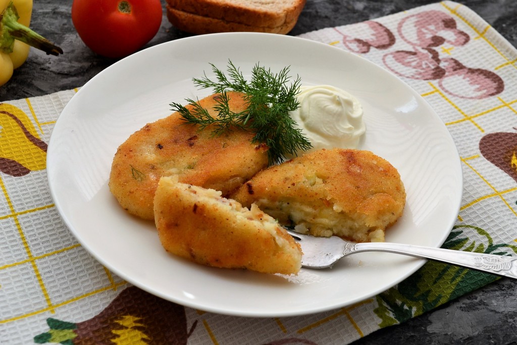 Вкуснейшие картофельные зразы, приготовленные с сыром, подавать горячими со сметаной.