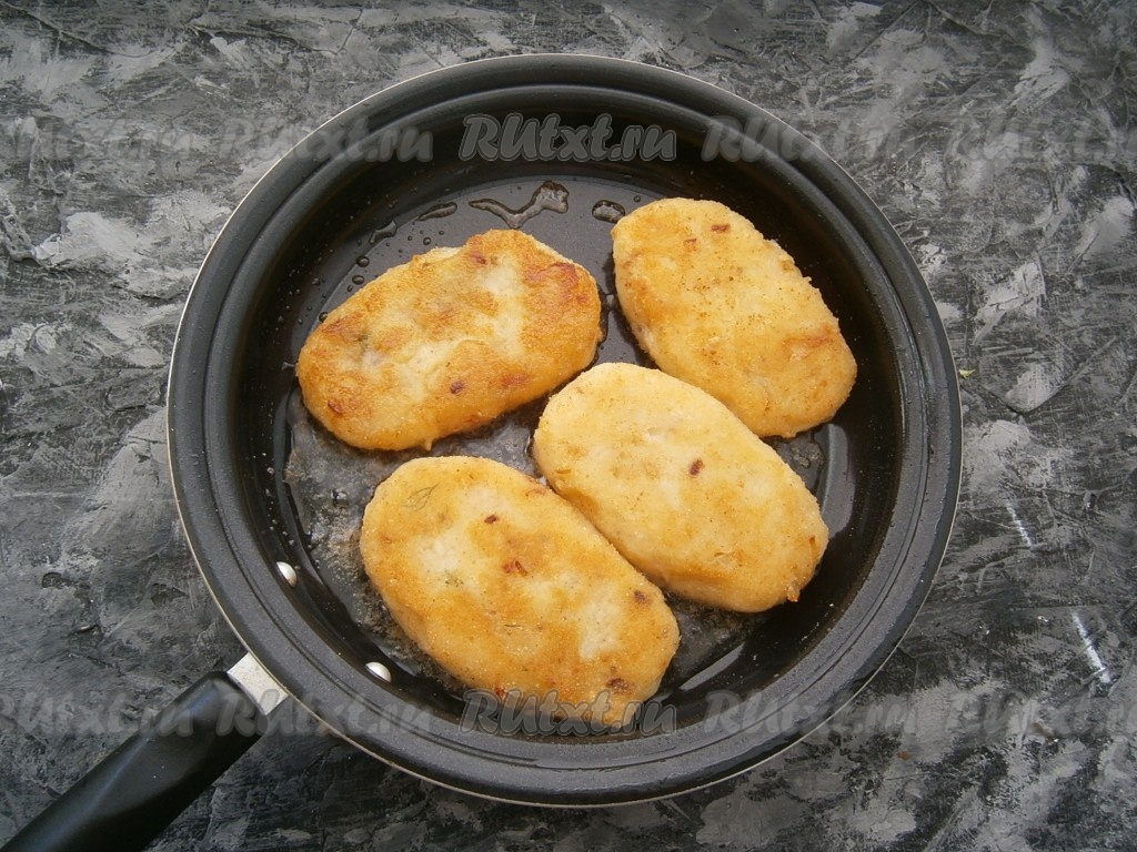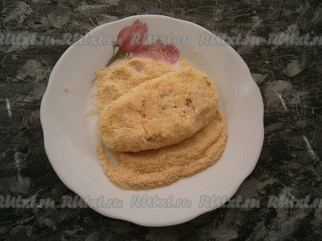 Аналогично сформировать все картофельные зразы с сыром внутри. Обвалять зразы со всех сторон в панировочных сухарях.