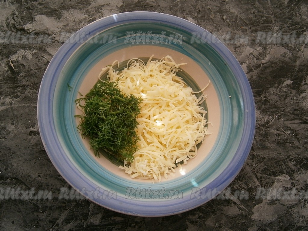 Сыр натереть на мелкой терке, добавить измельченный укроп.