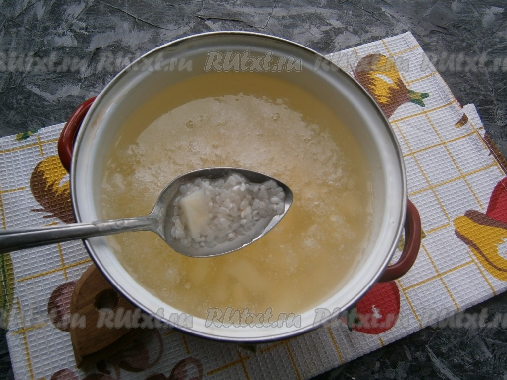 Когда вода с картошкой в кастрюле закипит, добавить рис, варить на медленном огне 15-20 минут.