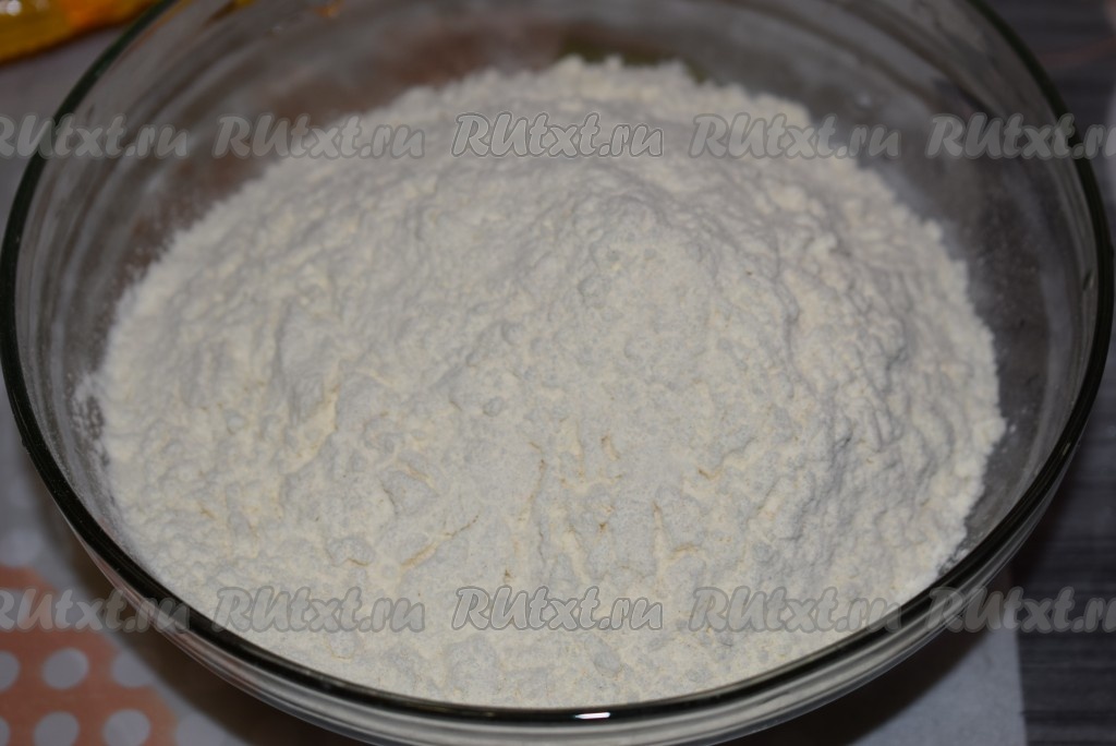 Для начала приготовим тесто, для этого муку насыпаем в глубокую миску.