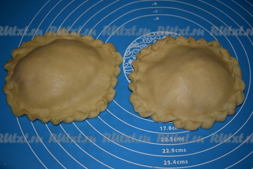 Делаем косичку по краю, защипывая фигурно край нашей пиццы-чебурека. Желательно не лепить сразу много изделий, так как тесто может размокнуть. Лепим сначала 2 штуки и начинаем их жарить, затем еще 2 и т.д.