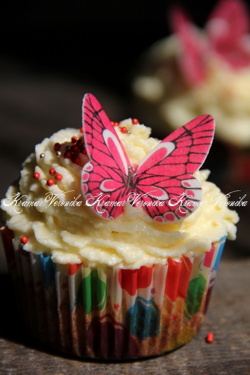 Посмотрите, как нарядно смотрятся капкейки с шапочкой из этого крема.
