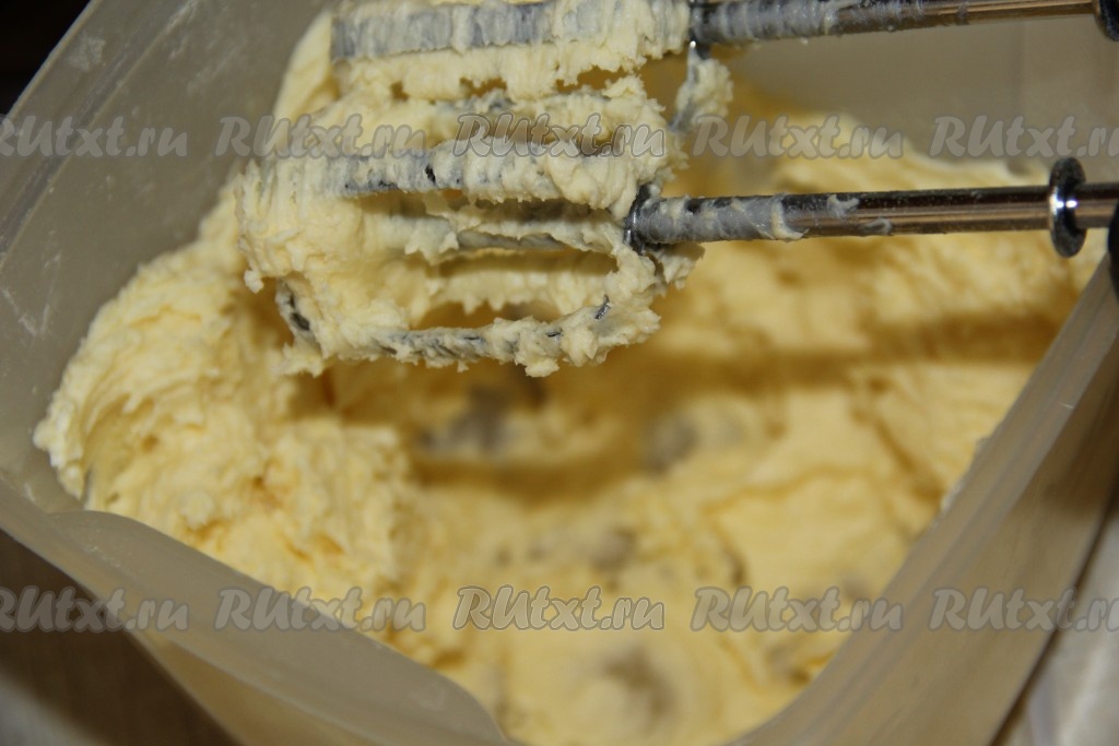 Масло с сахарной пудрой взбить миксером в течение 5 минут.