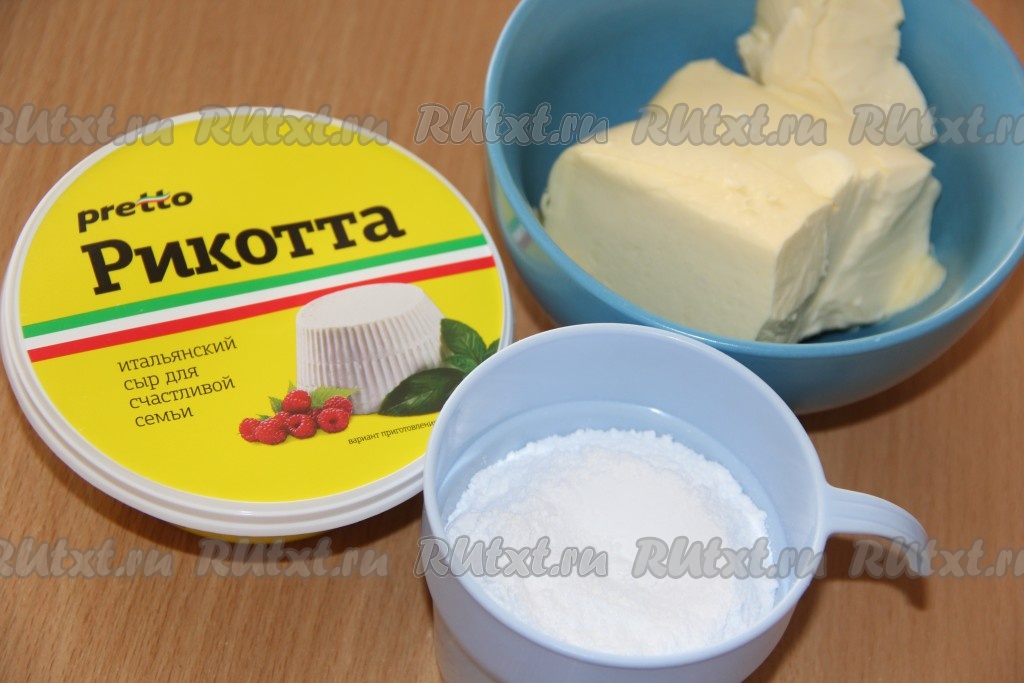 Всего из трёх ингредиентов (рикотты, сахарной пудры и сливочного масла) получается очень вкусный крем для капкейков или прослаивания тортиков. Сливочное масло следует предварительно размягчить при комнатной температуре.