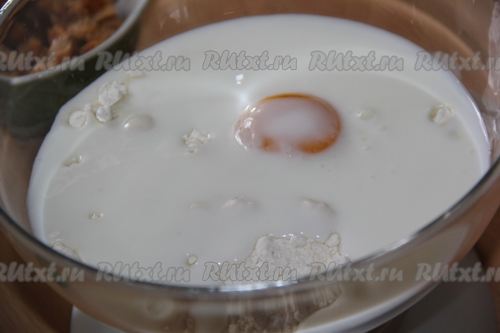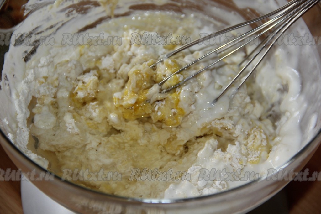 В тесто добавить растительное масло и ещё раз перемешать венчиком.