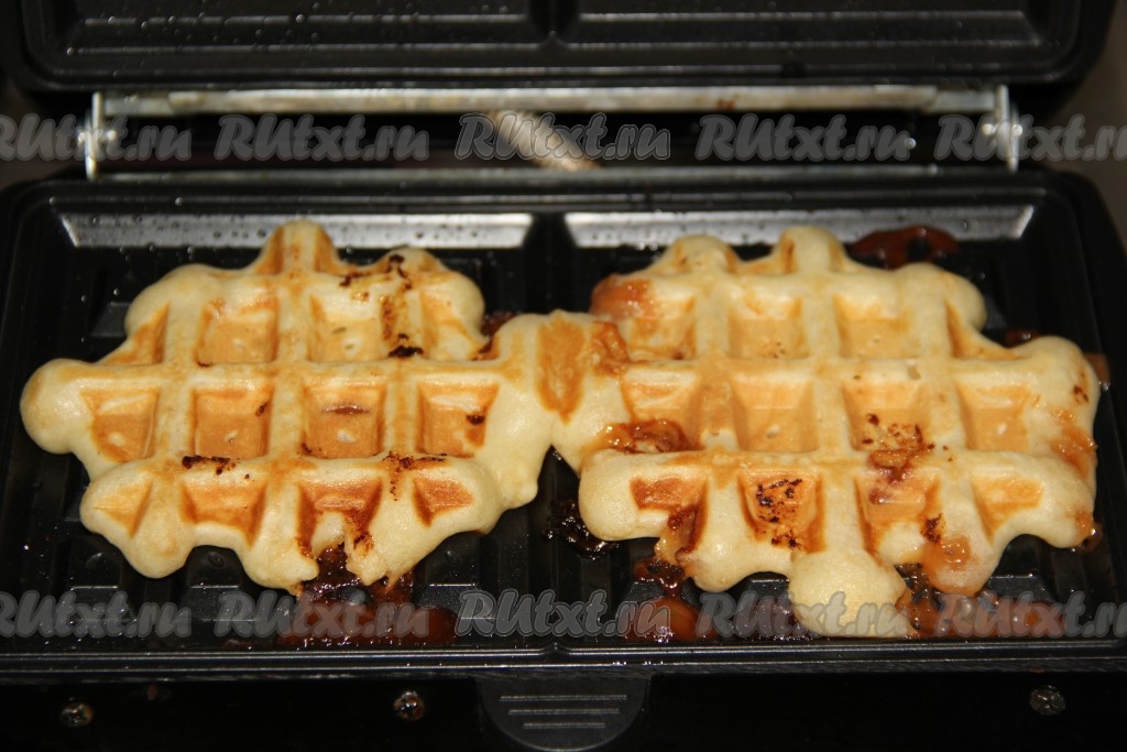 Плотно закрыть створки вафельницы и готовить, примерно, 5-7 минут. Венские вафли должны стать золотистого цвета.