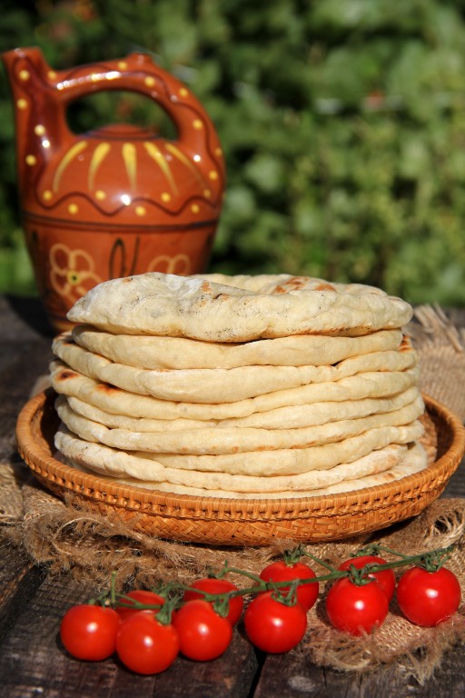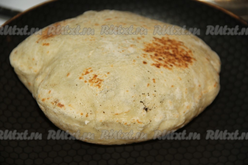 Такую пышную лепёшку "Базлама" нужно ещё несколько раз перевернуть на сковороде.