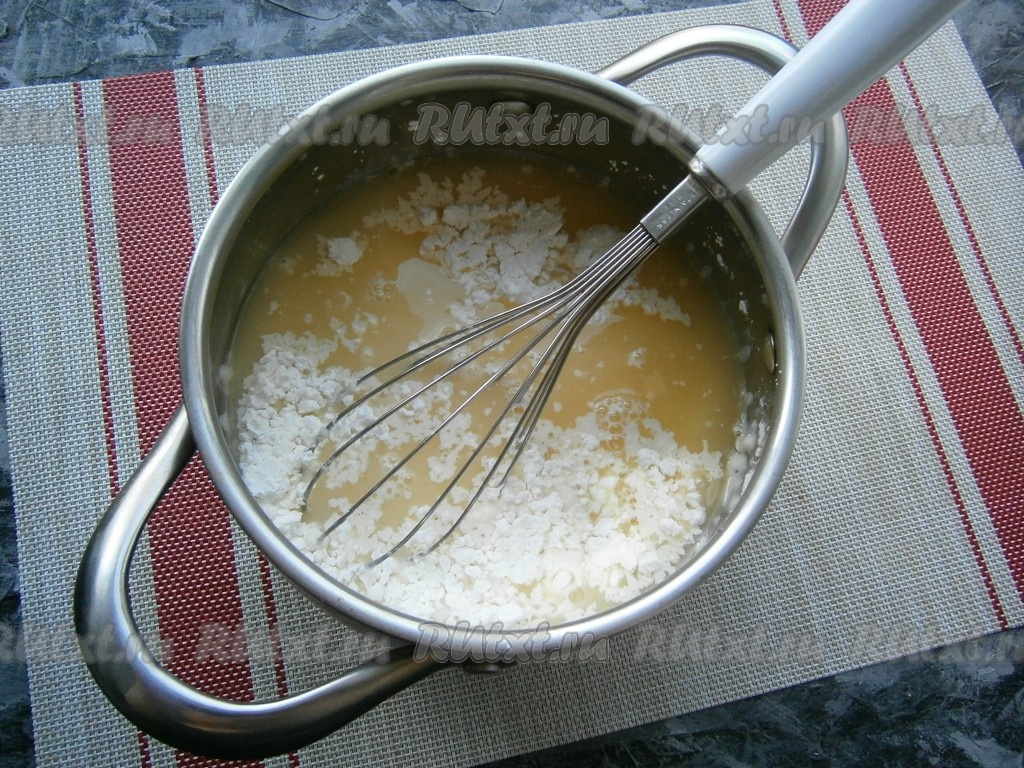 Снова перемешать, чтобы крахмал растворился в жидкости.