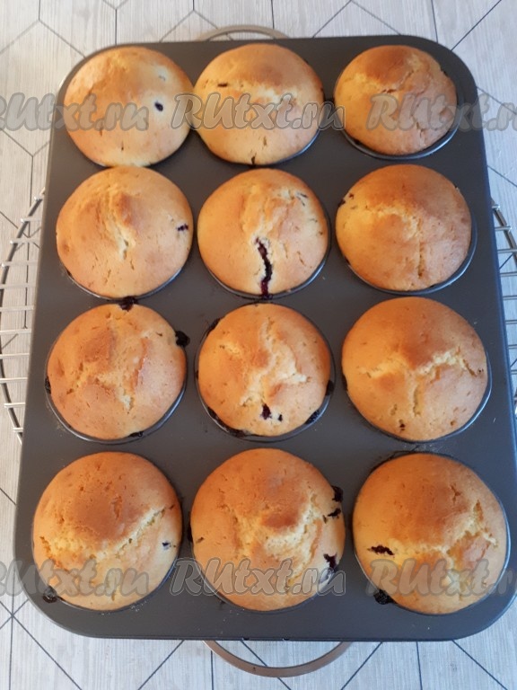 Испеченные кексы остудить и вынуть из формочек. Вкусные, воздушные кексы с черной смородиной на простокваше готовы.