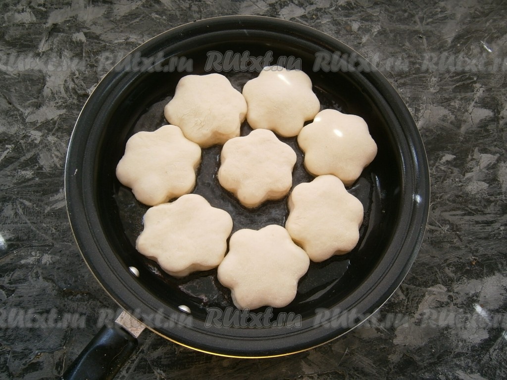 Разогреть в сковороде растительное масло, выложить в него пышки.
