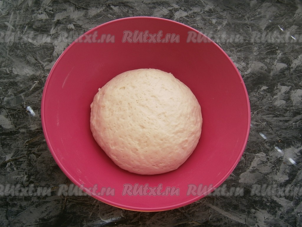 Накрыть тесто плёнкой и оставить в тёплом месте минут на 40-45. За это время тесто увеличится в 2-3 раза.