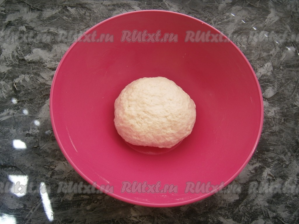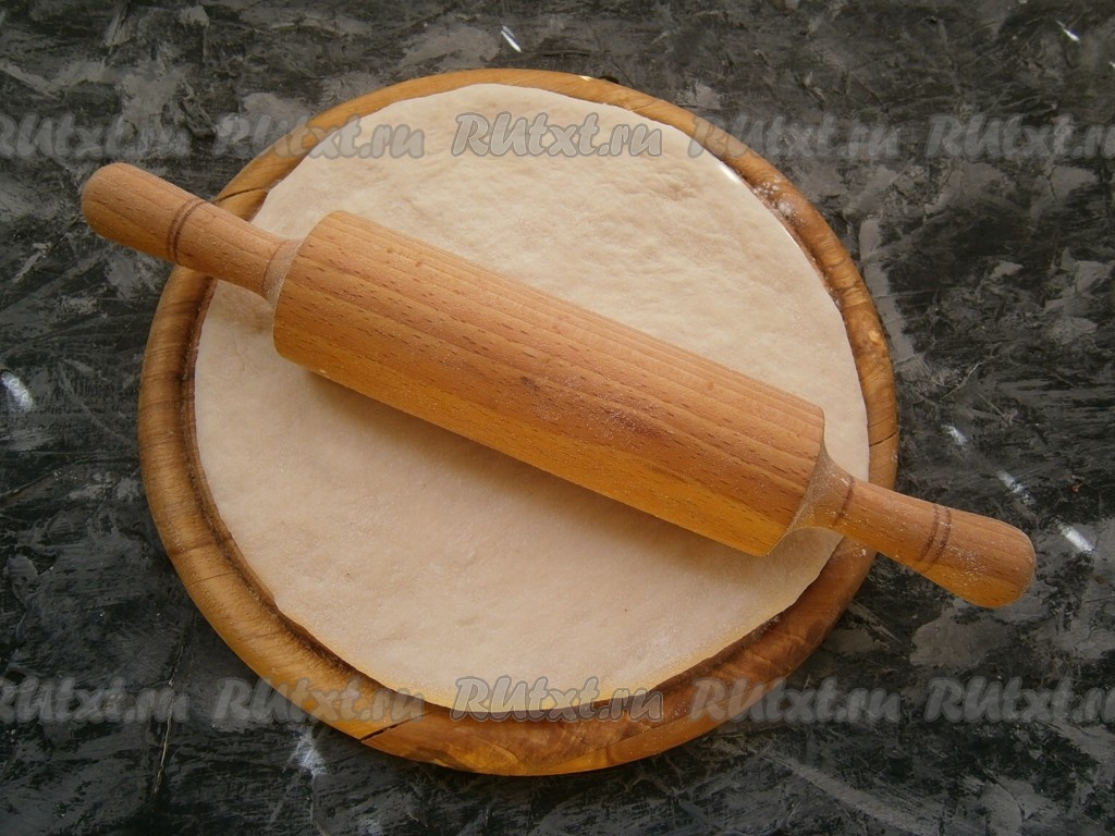 Тесто ещё раз обмять, подсыпав немного муки на стол, раскатать его в лепёшку толщиной около 1 см.