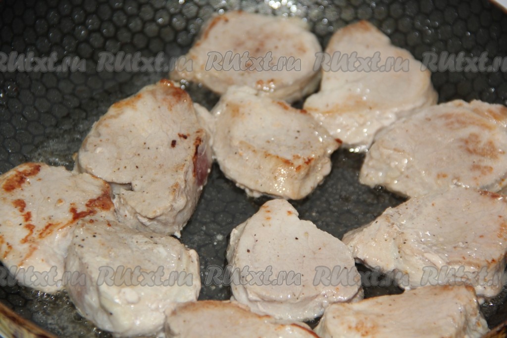 Обжарить мясо на достаточно сильном огне с двух сторон до золотистой корочки (примерно, по 2 минуты с каждой стороны).