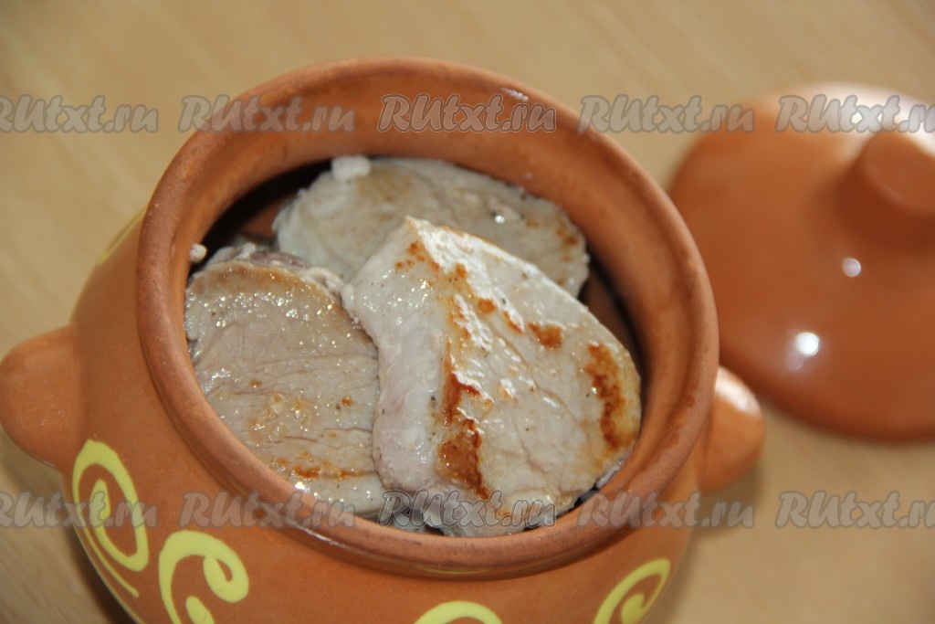 Обжаренное таким способом мясо после запекания в горшочке будет более сочным, так как после обжарки на нём образуется корочка, которая не будет давать выходить мясным сокам при томлении в духовке.