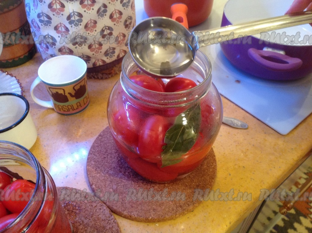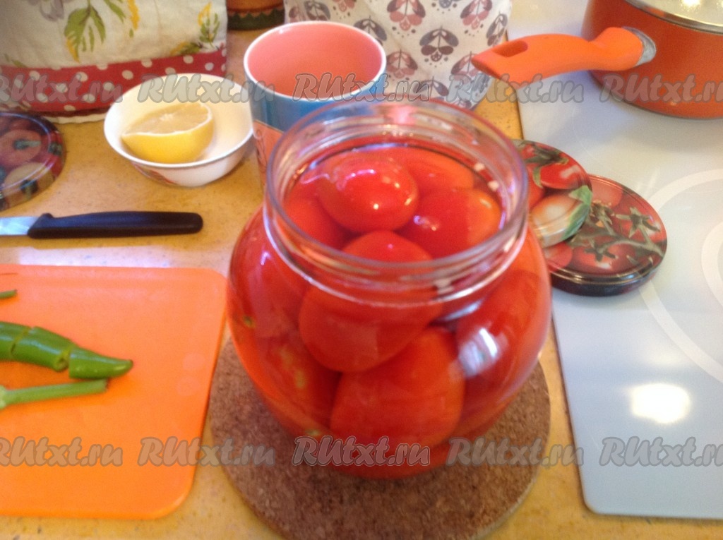 Заливаем маринад в банку с помидорами и закрываем плотно крышкой.
