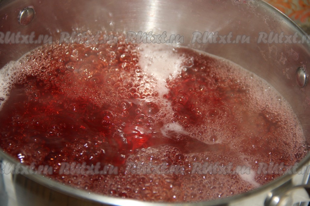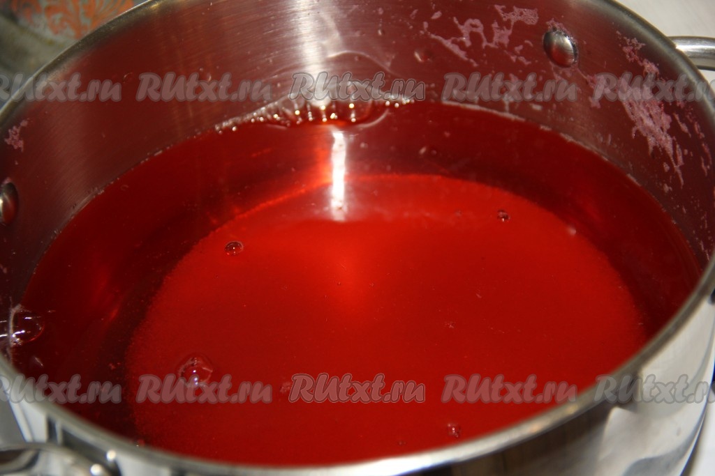 Довести воду с сахаром до кипения и проварить сироп пару минут.