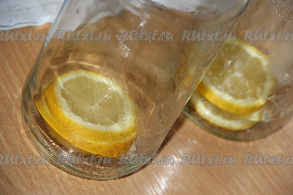 Баночки вымыть и простерилизовать любым удобным для вас способом. Лимон нарезать на кружочки. Я сделала 3 литровые баночки. Если делаете в трёхлитровой банке, то всё выкладывайте в одну банку. Я разделила лимон, мяту и ягоды на три равные части. Выложить на дно каждой литровой банки лимон.