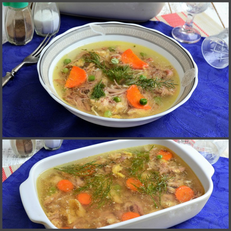 Предлагаю вам попробовать необычайно вкусное заливное, приготовленное из птицы. Желательно, чтобы птица была домашней, тогда заливное будет иметь шикарный вкус и аромат. У меня были части домашних утки, курицы и гуся, я ещё добавила куриный окорочок, купленный в магазине. Готовый бульон получается достаточно жирным, поэтому жир нужно будет слить в баночку, остудить и поместить в холодильник. В дальнейшем на этом жиру можно жарить картофель или добавлять его в различные блюда. Готовое заливное из птицы получается прозрачным и очень вкусным, это блюдо украсит любой праздничный стол!