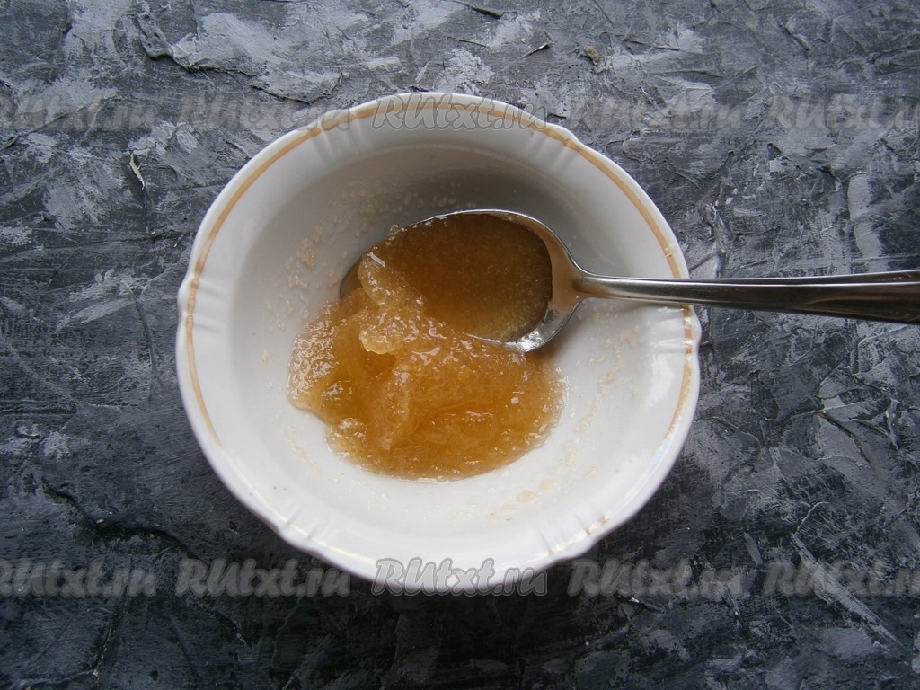2 столовые ложки бульона отлить в пиалу, остудить, всыпать в него желатин, перемешать и дать желатину немного набухнуть в течение 3-4 минут.
