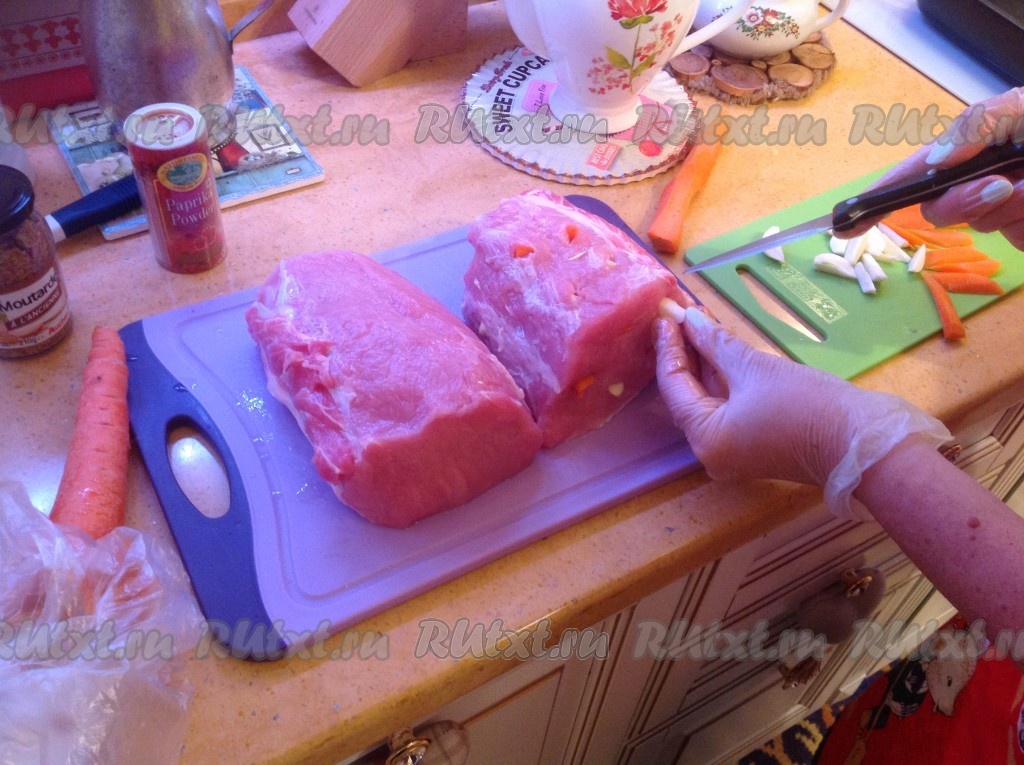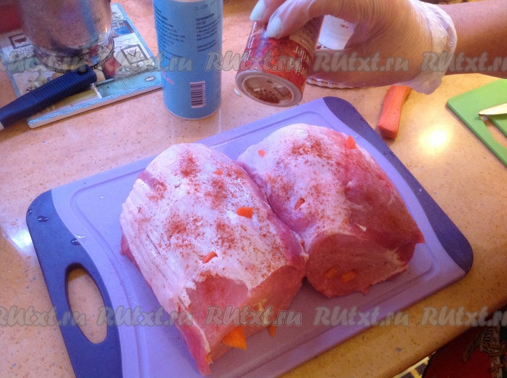 По прошествии указанного времени духовку выключить, но не открывать - оставить в ней мясо ещё на 30-40 минут. Если у вас куски не такие большие, можно время приготовления сократить. Достать нашу корейку из духовки и дать ей остыть.