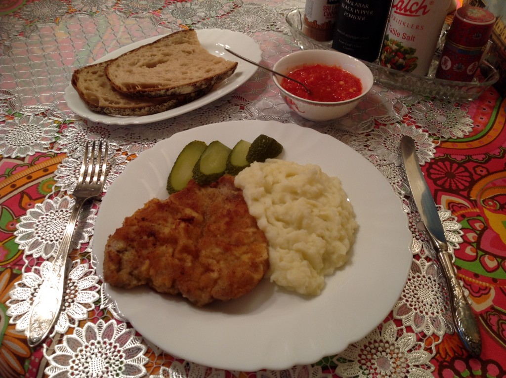 Наши отбивные из свиной шейки готовы! Подаём их с картофельным пюре или любым другим гарниром. В качестве острого соуса можно использовать аджику витаминную из моей кулинарной книги. Пора звать всех к столу!