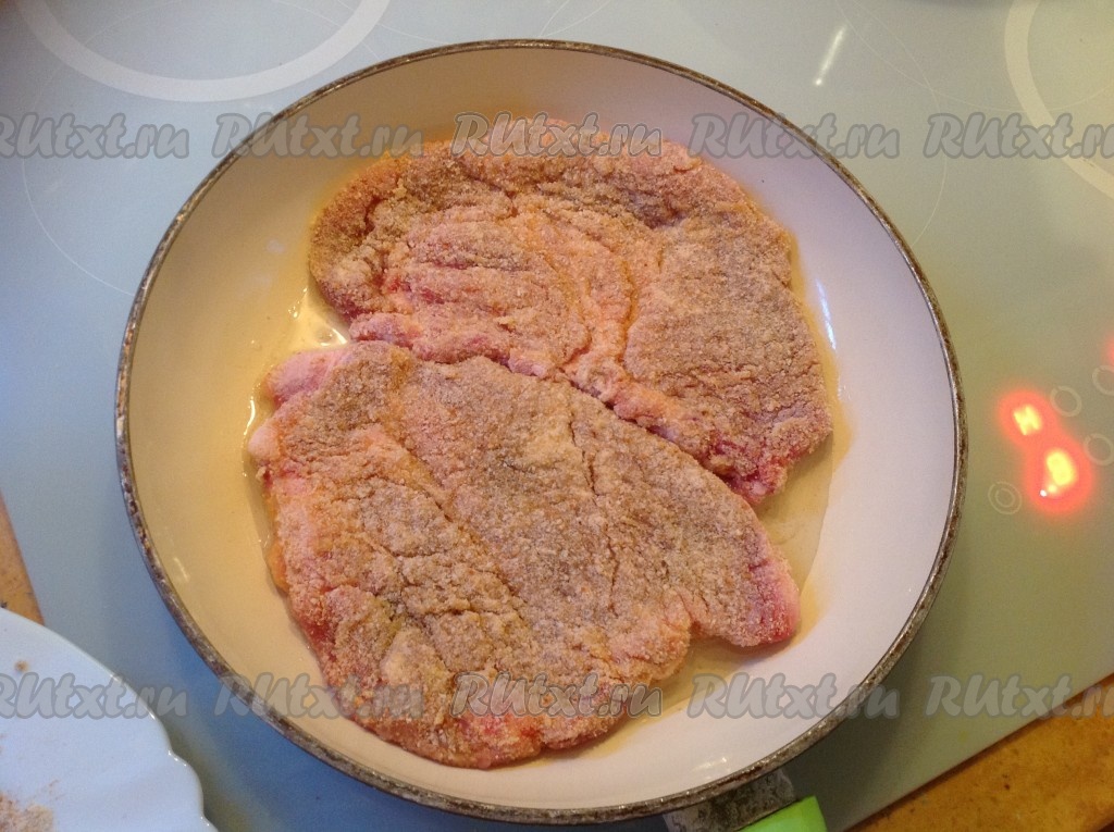 Сковородка с маслом как раз разогрелась - скорее выкладываем нашу отбивную.
