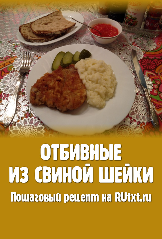 Предлагаю вам приготовить вкусные и сочные отбивные из свиной шейки. Для отбивных берите не очень тонкие кусочки, они должны быть до отбивания толщиной, примерно, 1 см. А ещё - свиная шейка обычно бывает с прослойками жира и очень мягкая, поэтому отбивные просто тают во рту!