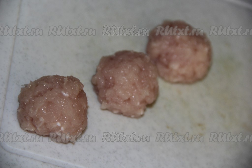 Сформировать из фарша небольшие шарики (фрикадельки).
