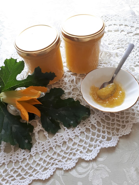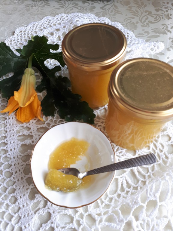 Недавно я нашла в Интернете рецепт интересного джема из кабачков. Необычность его состоит в том, что в процессе варки добавляется пакетик порошка для приготовления желе. Рецепт сразу привлёк моё внимание. Я приготовила джем на пробу… и пожалела, что не сварила больше. Готовый джем получается очень приятным на вкус. Напоминает то ли лимон, то ли ананас, то ли манго, но только не кабачок. Я готовила с лимонным желе, но можно поэкспериментировать и взять другое желе, тогда и вкус, и цвет будут иными. Предлагаю и Вам заготовить на зиму баночку этого удивительного джема!