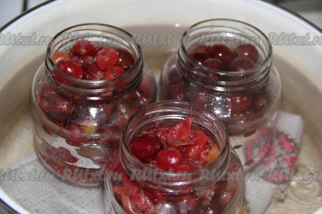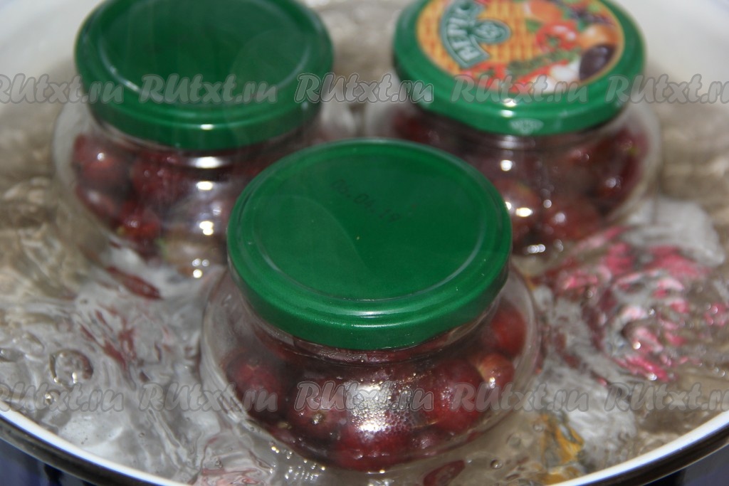 Когда вода в кастрюле закипит, можно уменьшить огонь и оставить банки стерилизоваться в течение 30 минут. Можно прикрыть баночки прокипячёнными крышками.